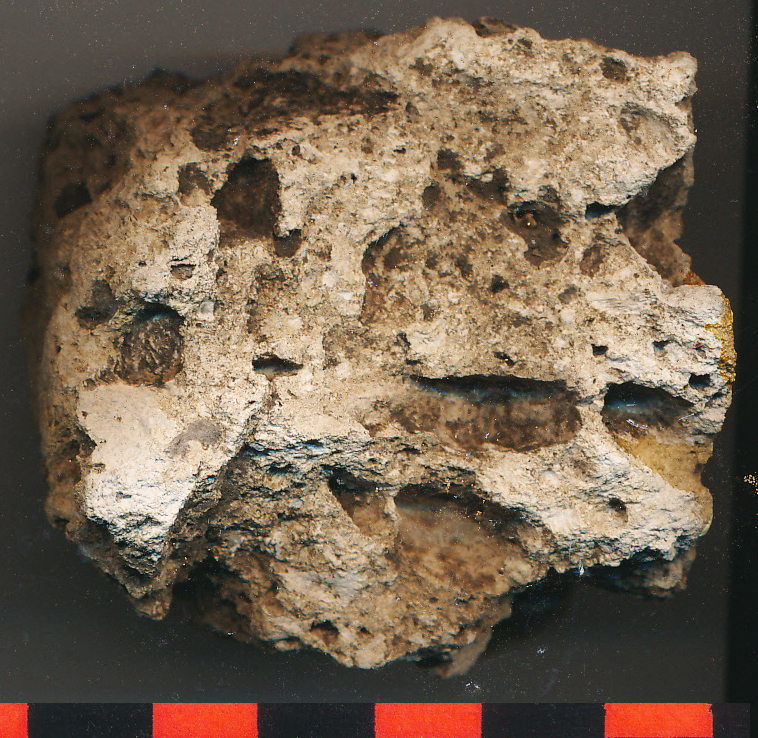 A betöltés felső rétegében: Szabálytalan kocka alakú, világosszürke, lyukacsos, könnyű kődarab