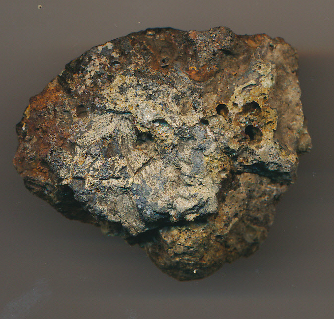 Szabálytalan alakú sötétszürke, üveges-hólyagosra égett nehéz salakdarab.