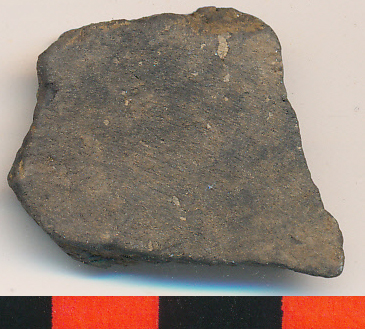 Fekete, kívül-belül igen jól eldolgozott felületű, vékony falú egyenes oldaltöredék.