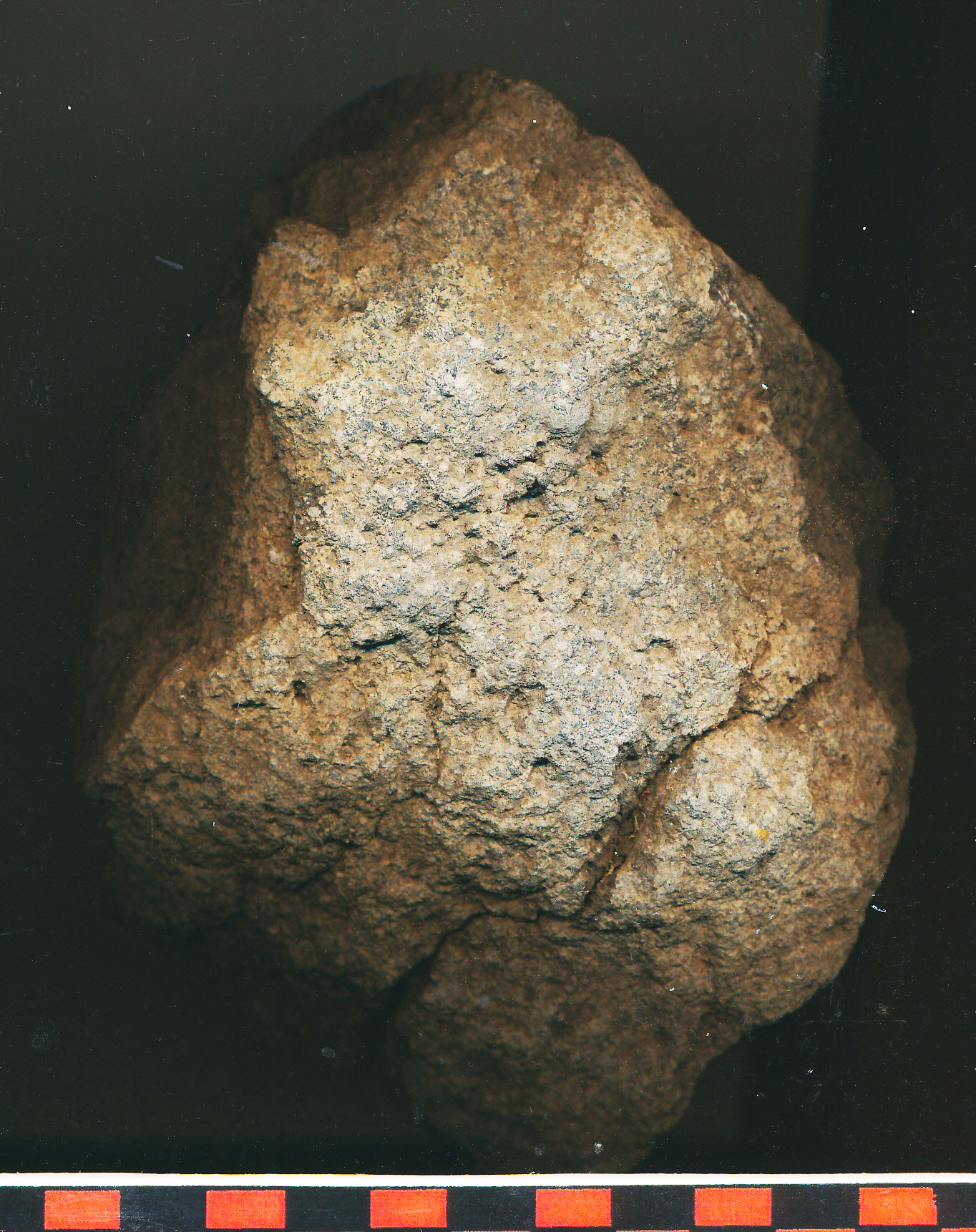A betöltés alsó rétegében: Szabálytalan alakú sötétszürke malomkő egyik oldalán simára csiszolt töredéke.
