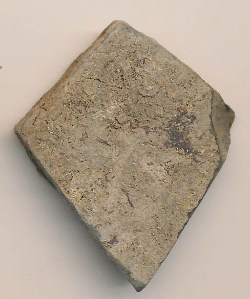 Sötétszürke, korongolt, vékony falú edény egyenes, agyonkopott oldaltöredéke.
