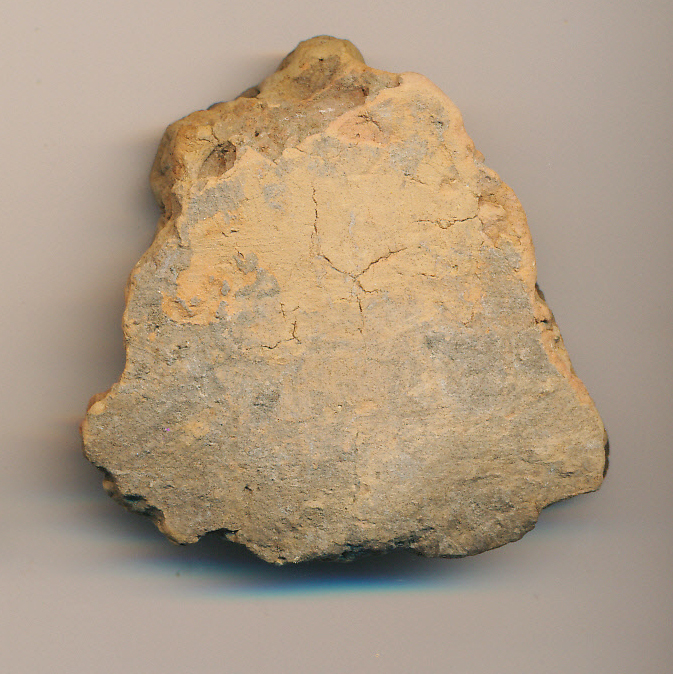 Eldolgozott téglaszínű külső felületű, sötétszürke törésű, kerámiazúzalékkal soványított, korong nélkül készített edény enyhén íves oldaltöredéke. Belső felülete letöredezett.