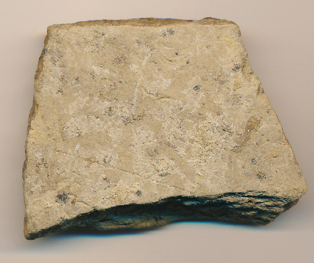 Világosdrapp, korongolt edény egyenes oldaltöredéke.