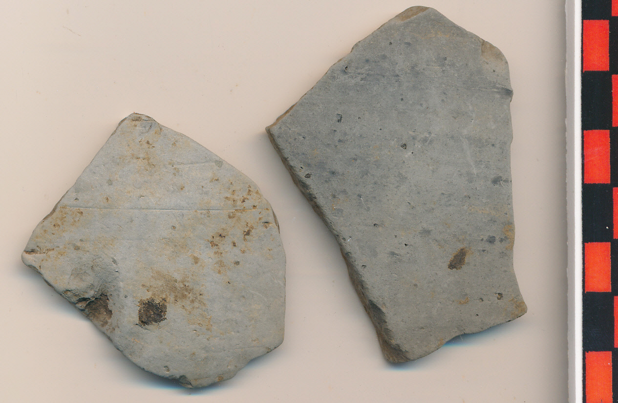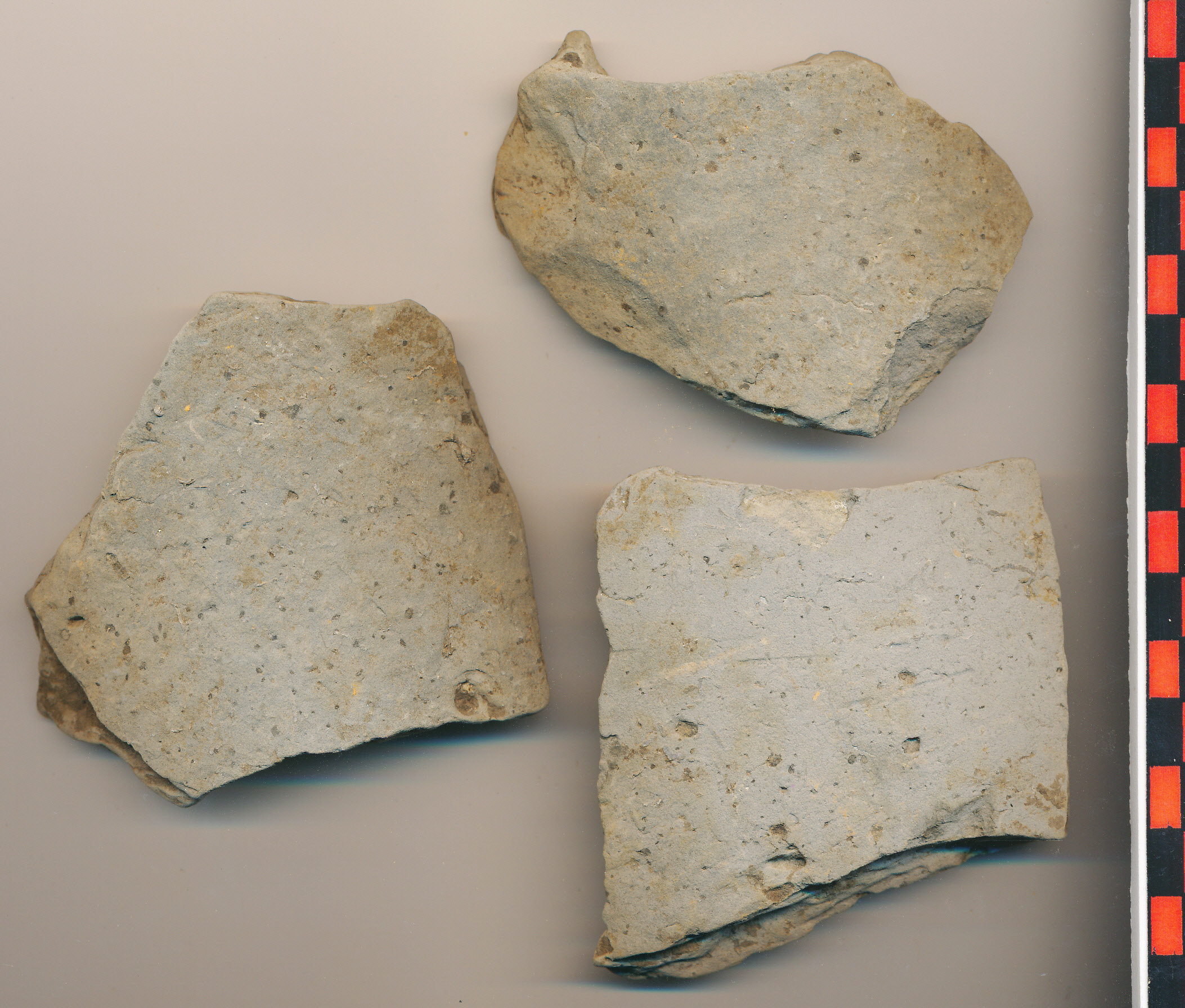 Az előző edény világosszürke, korongolt, erősen kopott, 2 oldaltöredéke.