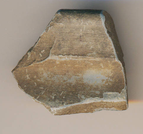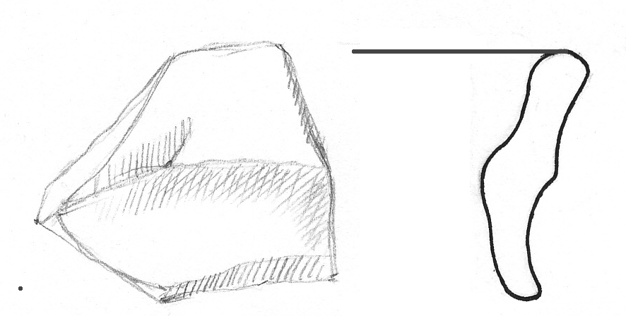 A 4. és 5. objektum közötti részen előkerült szórvány lelet: Szürke, korongolt, erősen kihajló, fedőhornyos peremtöredék. A kihajló perem az íves nyak egymástól éles bordával tagoltan válik el.