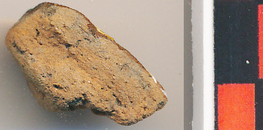 Apró, szabálytalan alakú, vörösre égett kis tapasztásdarab.