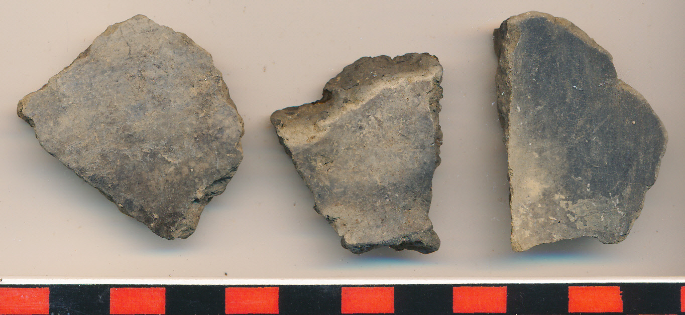Fekete, sárga foltos jellegtelen oldaltöredékek.