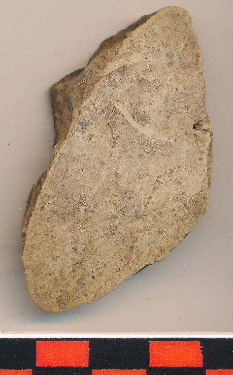 Drapp, kívül-belül eldolgozott felületű, kevés kerámiazúzalékkal soványított, jellegtelen, enyhén íves oldaltöredék.