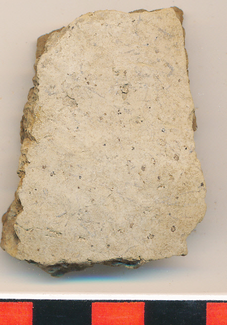 Eldolgozott sárga külsejű, belül világosszürke, szürke törésű, kerámiazúzalékkal soványított, jellegtelen oldaltöredék.