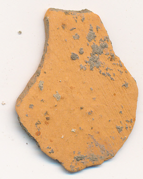 Téglaszínű, korongolt edény falának külső oldaláról lepattant vékony szilánk.