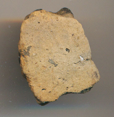 Kívül-belül téglaszínű, fekete törésű, korong nélkül készített, kerámiazúzalékkal soványított edény kicsi oldaltöredéke.