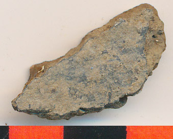 Fekete, eldolgozott külső felületű apró, jellegtelen töredék.