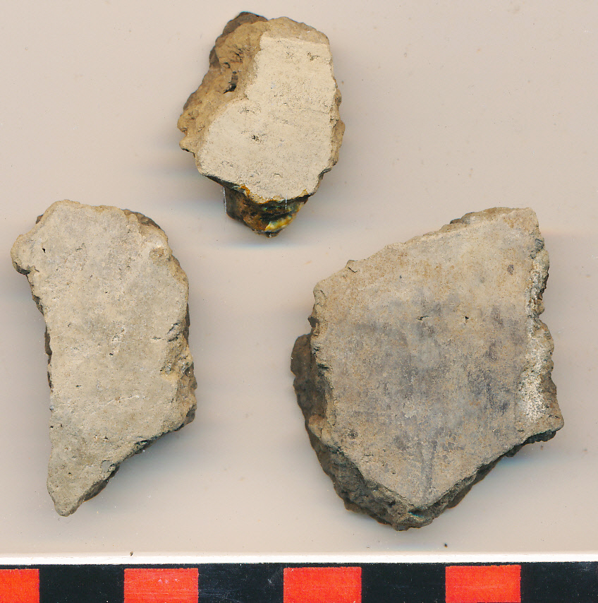 Sárga, fényezett külső felületű, belül fekete réteggel, ugyancsak elsimított, kerámiazúzalékkal soványított edények töredékei.