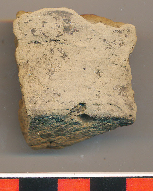 Sárga, kicsit durvább kivitelű edény vágott alja a felmenő fal indításával.