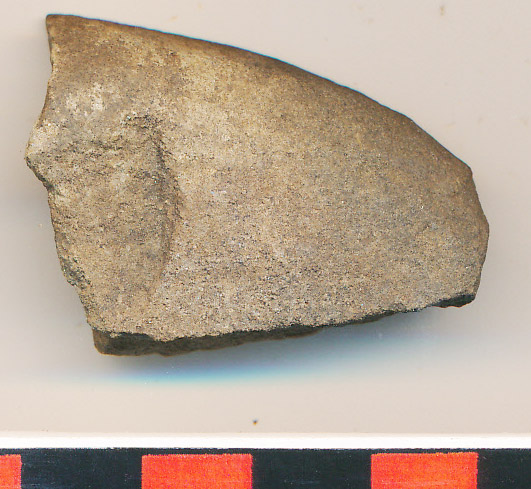 Szabálytalan háromszög alakú, két oldalán simára csiszolódott kődarab.