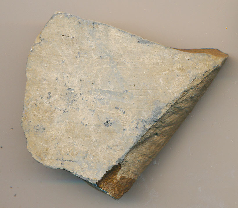 Szürke, külső felületén eredetileg talán sötétebbre simított, de kopott, korongolt, vastagabb falú edény oldaltöredéke.