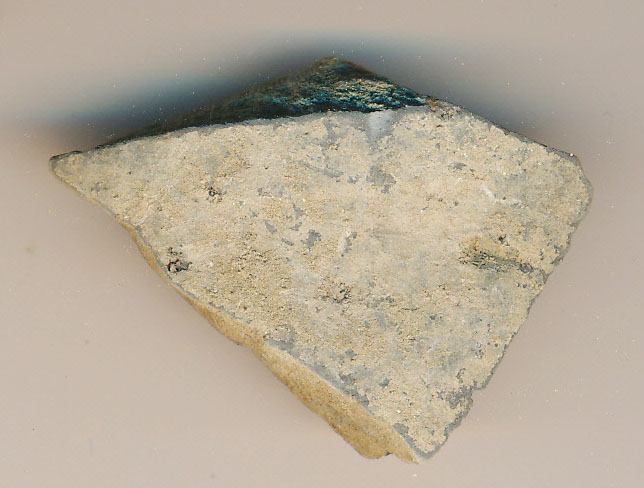 Kívül-belül sötétebb szürke, világosabb szürke törésű, korongolt, kopott kisebb oldaltöredék.