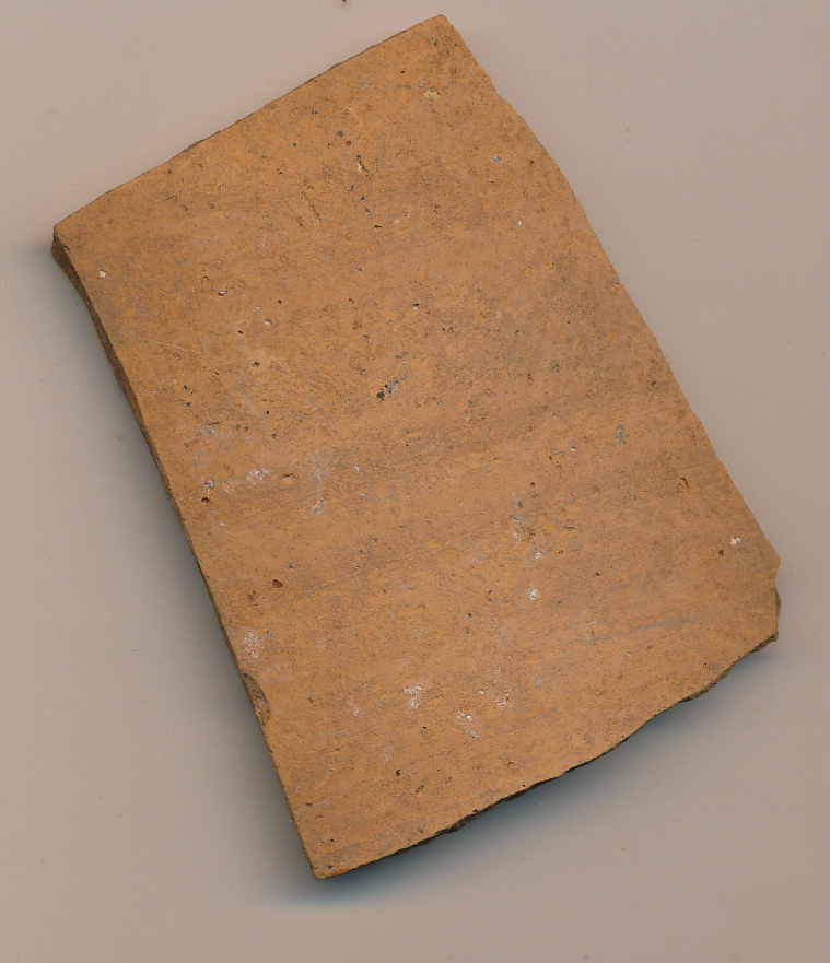 Téglaszínű, korongolt, külső felületén sávosan simított, vékony falú edény oldaltöredéke.
