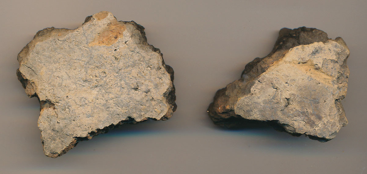 Kívül téglaszínű felületű, szürkésfekete, kerámiazúzalékkal soványított, korong nélkül készített edény két jellegtelen oldaltöredéke.