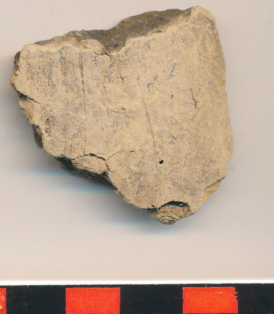 Sárga külső felületű, szürkésfekete törésű, kevés kerámiazúzalékkal soványított, korong nélkül készített kisebb edény kívül-belül eldolgozott, enyhén íves oldaltöredéke.