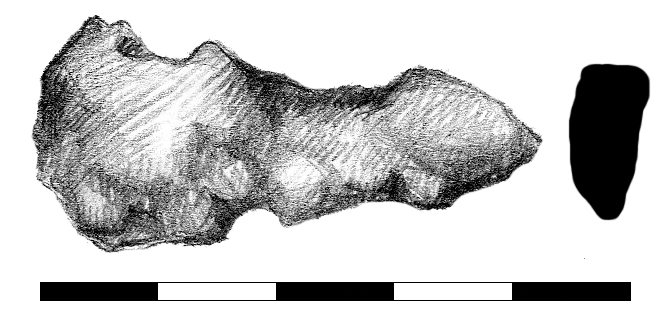 Szabálytalan alakú, hosszúkás, nem meghatározható funkciójú vastárgy, illetve egy kisebb töredék.