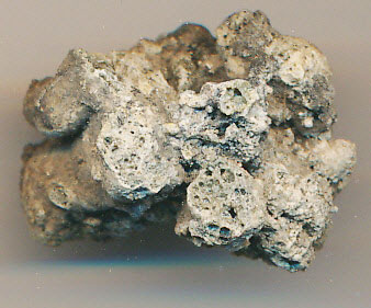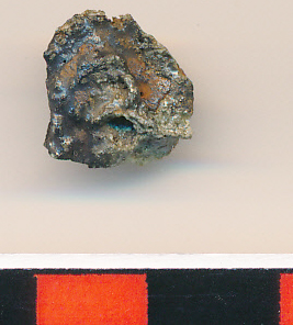 Szabálytalan alakú, világosszürke, hólyagosra égett könnyű kis salakdarab. Egy kis darabja zöldes színű, melyet fémnek gondoltunk. A restaurálás során derült ki, hogy ez is salakdarabka.