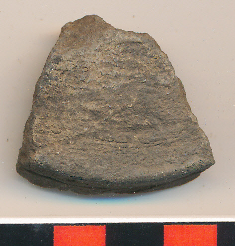 Fekete, homokos anyagú, korongolt edény vágott alja.