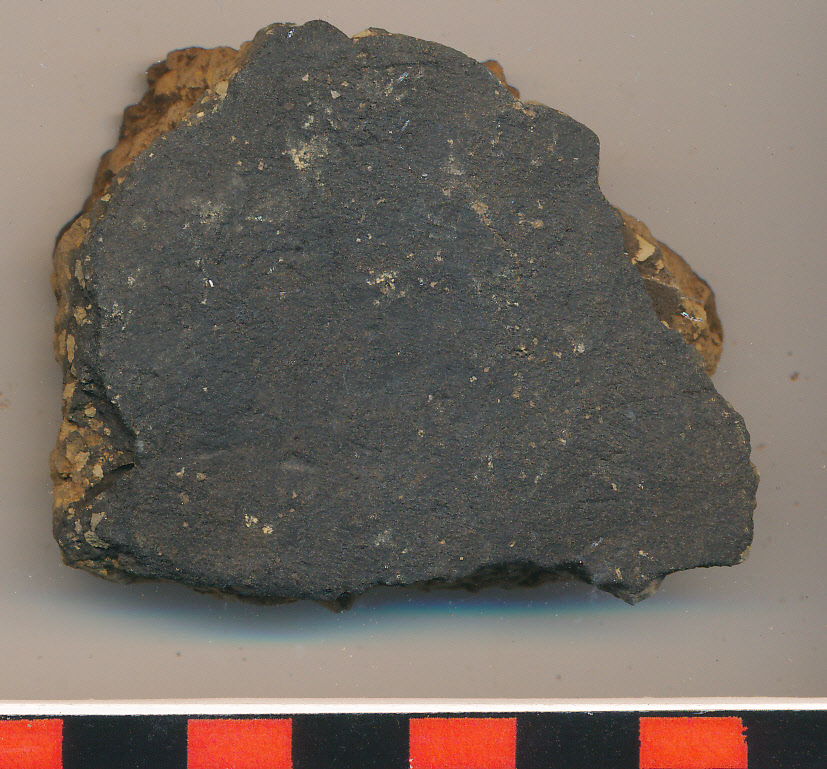 Kívül-belül eldolgozott fekete, fehér kerámiazúzalékkal erősen soványított vastag falú oldaltöredék.
