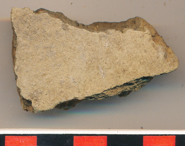 Kívül eldolgozott, belül fényezett, drapp, kerámiazúzalékkal soványított oldaltöredék.