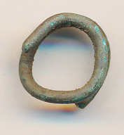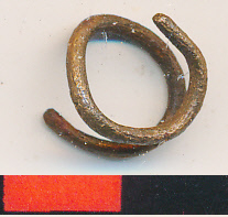 Háromszorosan csavarodó, kör metszetű bronzdrótból hajlított kis "rugó".