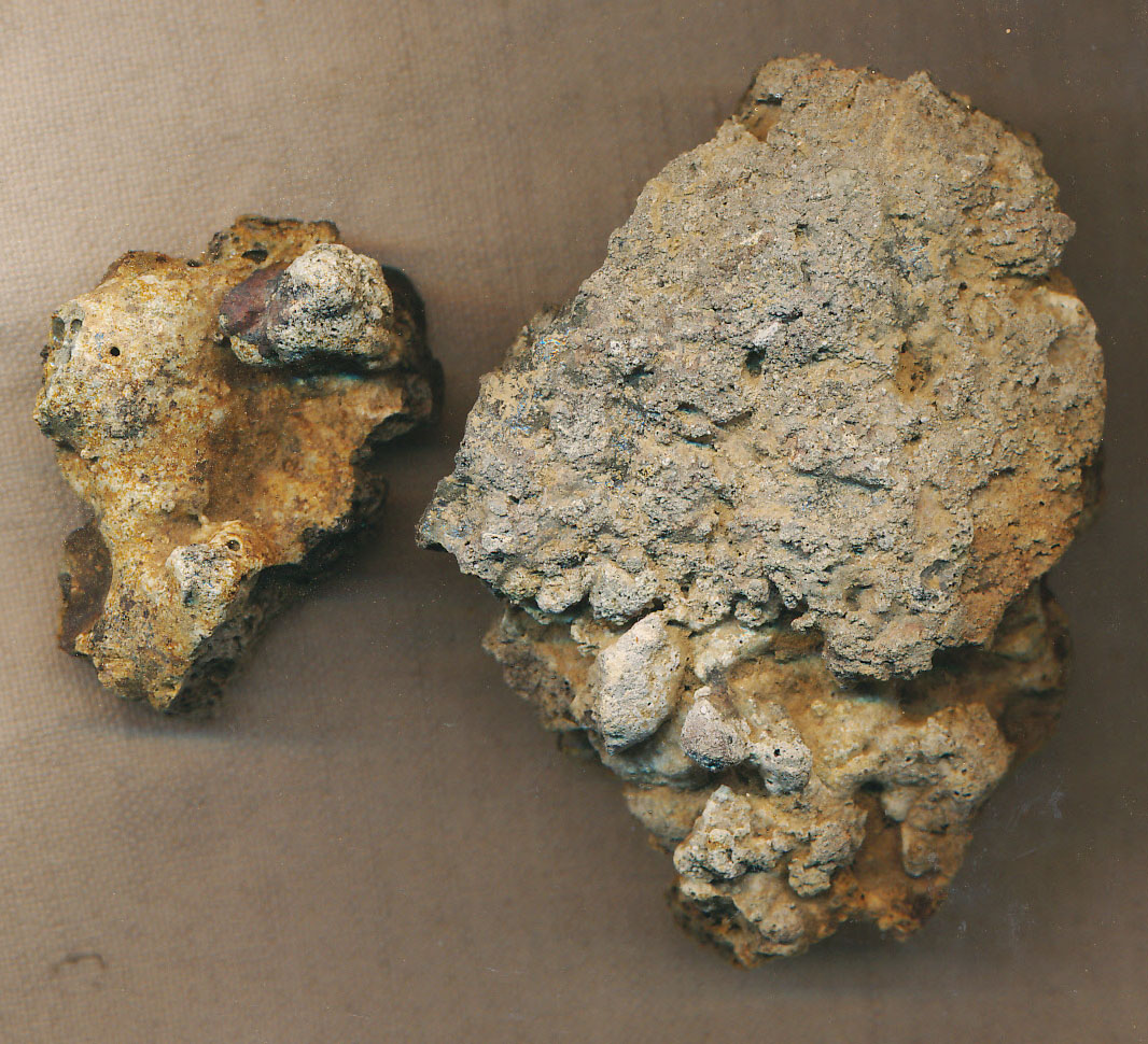 Szabálytalan alakú, a szürke különböző árnyalataiban játszó, hólyagos-üvegesre égett salakdarabok.