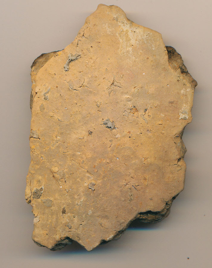 Kívül-belül téglaszínű felületű, fekete törésű, kerámiazúzalékkal soványított, korong nélkül készített edény belül eléggé durva felületű oldaltöredék.