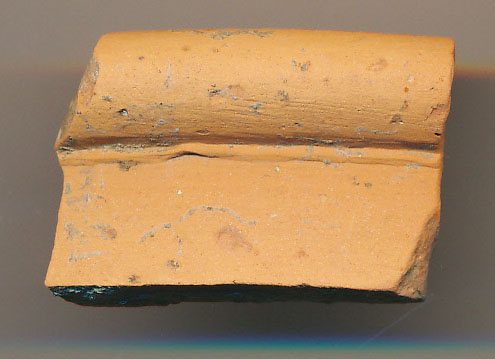 Téglaszínű, korongolt, gyűrűs peremű tál peremtöredéke.