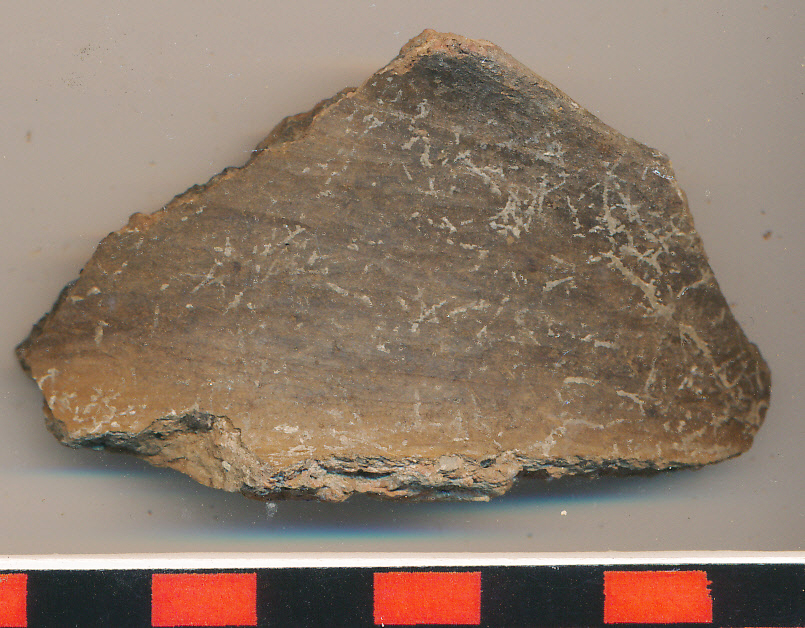 Kívül-belül fényezett barna, téglaszínű törésű edény kúpos nyakának töredéke az elvékonyodó, csücskös perem indulásával.