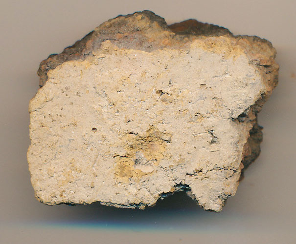 Téglaszínű külső, szürke belső felületű, szürkésfekete törésű, kerámiazúzalékkal soványított, korong nélkül készített, vastag falú, omlékony anyagú edény oldaltöredéke.
