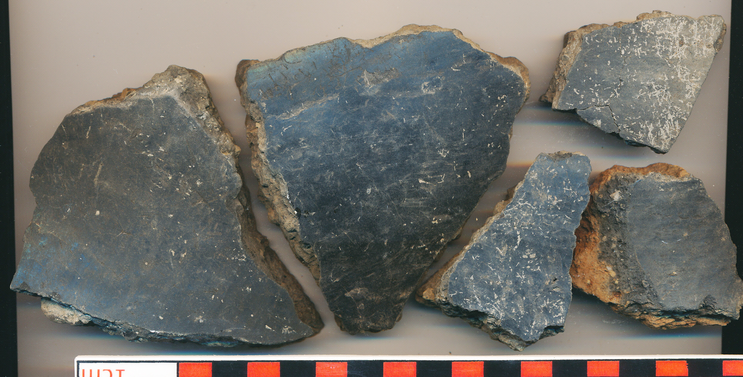 Fekete, simított, illetve egy esetben fényezett külső felületű, kerámiazúzalékkal soványított, vastag falú nagyobb edények fekete törésű, belsejükben sárga-drapp, illetve egy esetben téglaszínű, egyben pedig fekete oldaltöredék.