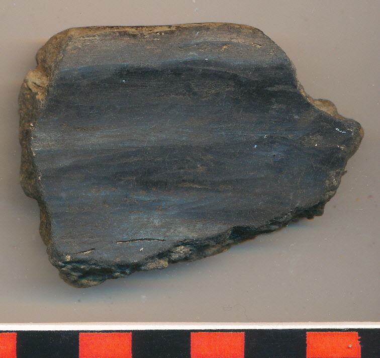 Kívül-belül fényezett, külső felületén fekete, belsejében sárga, vastag falú nagy edény elvékonyodó, enyhén kihajló pereme.