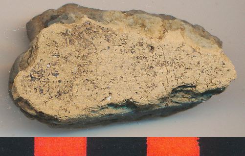 Kívül téglaszínű, szürkésfekete törésű kopott oldaltöredék.