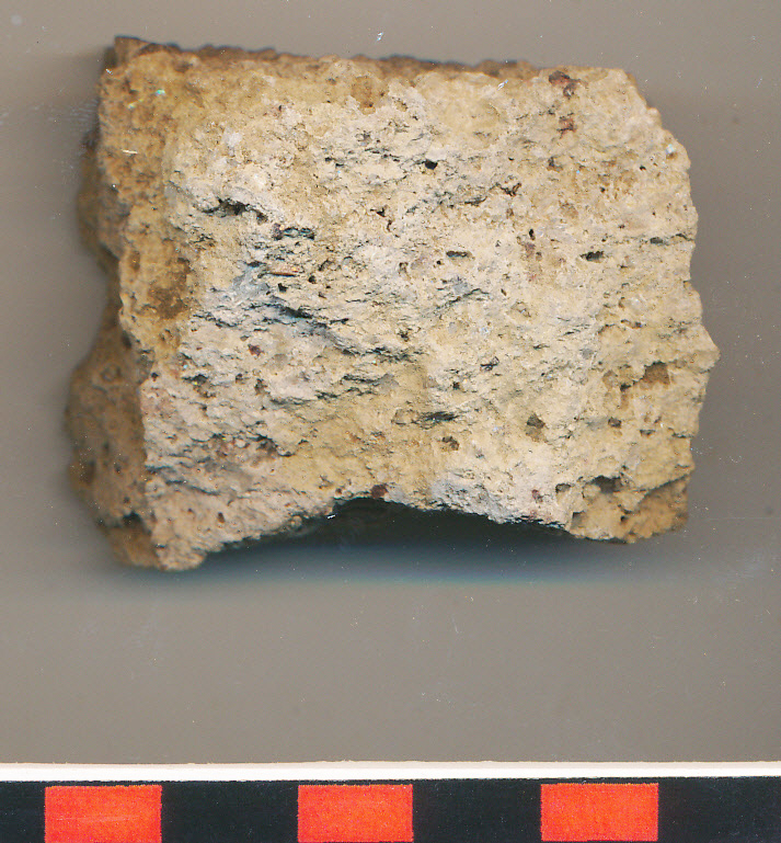 Szabálytalan téglatest alakú fehér, szemcsés kődarab.