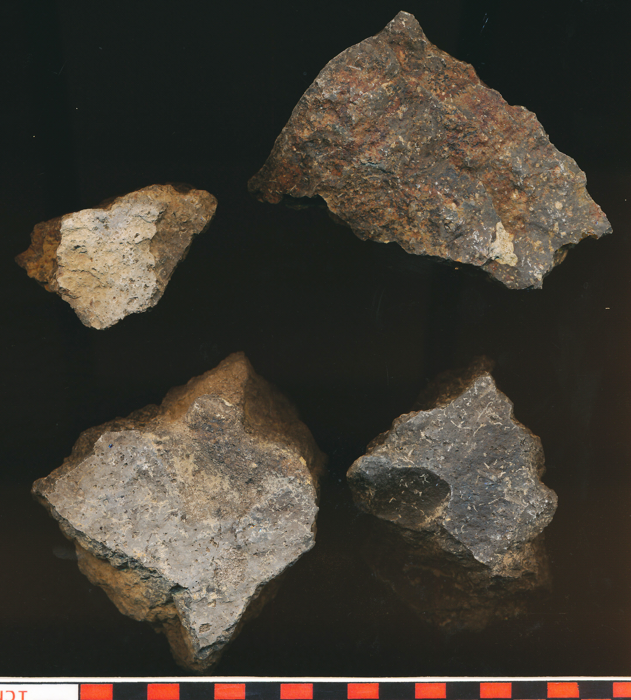 Szabálytalan alakú sötétszürkés fekete kődarabok (andezit?).