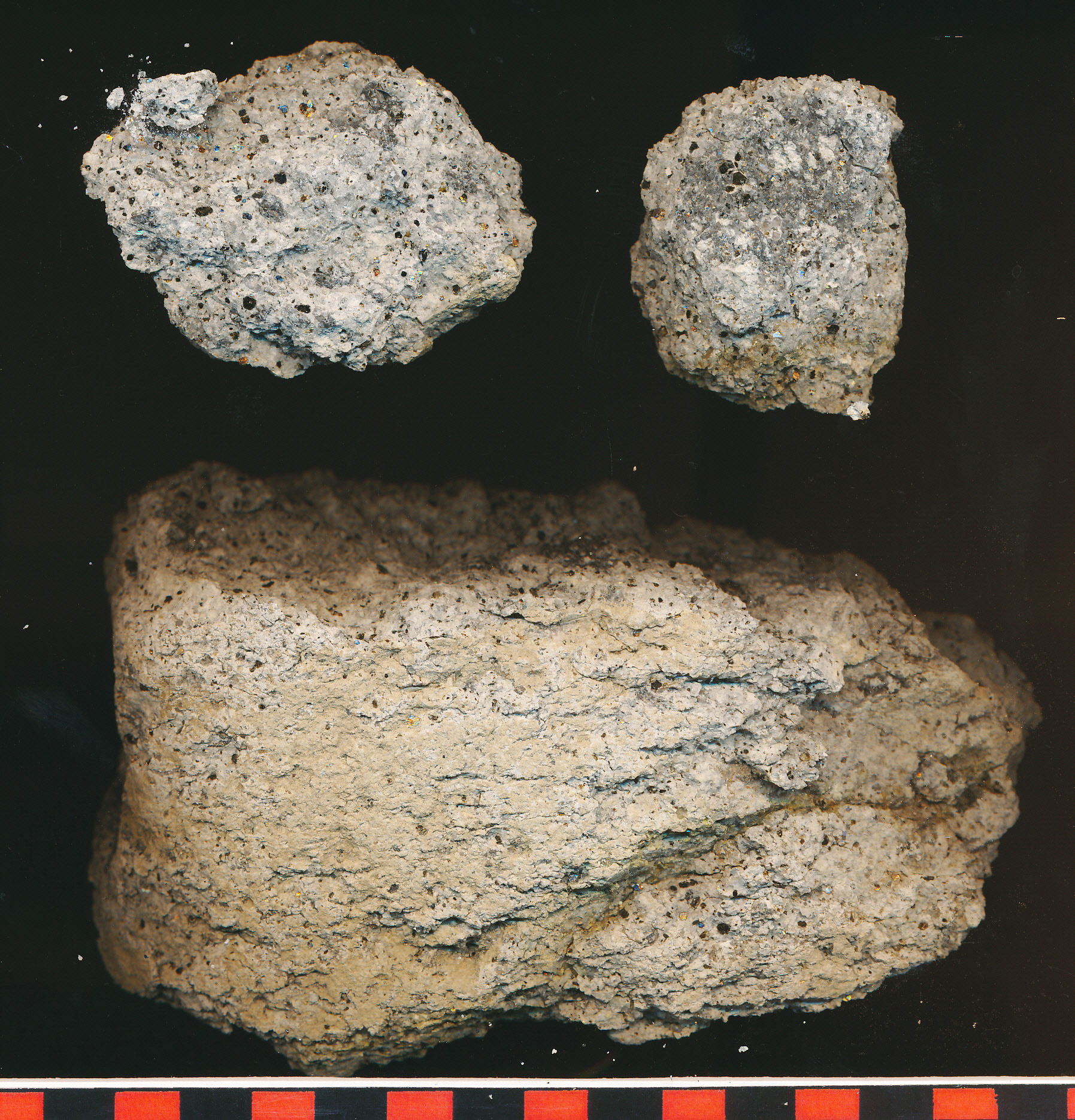Szabálytalan alakú, szemcsés-csillámos, omlékony kő (pár leomlott darabot anyagvizsgálatra eltettünk leltározatlanul.)