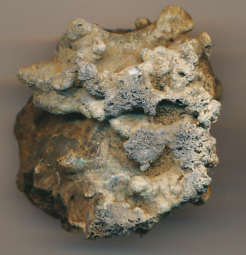 Piszkosfehér, szürke foltos, szabálytalamn alakú, üveges-hólyagosra égett salakdarab.