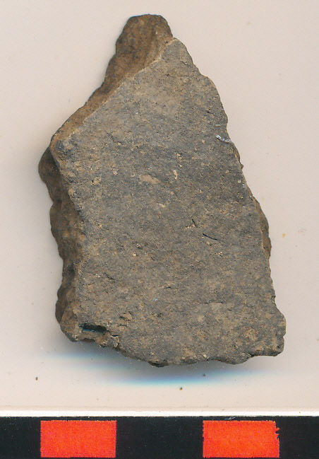 Fekete, kívül-belül eldolgozott felületű, egyenes falú oldaltöredék.