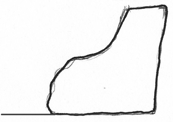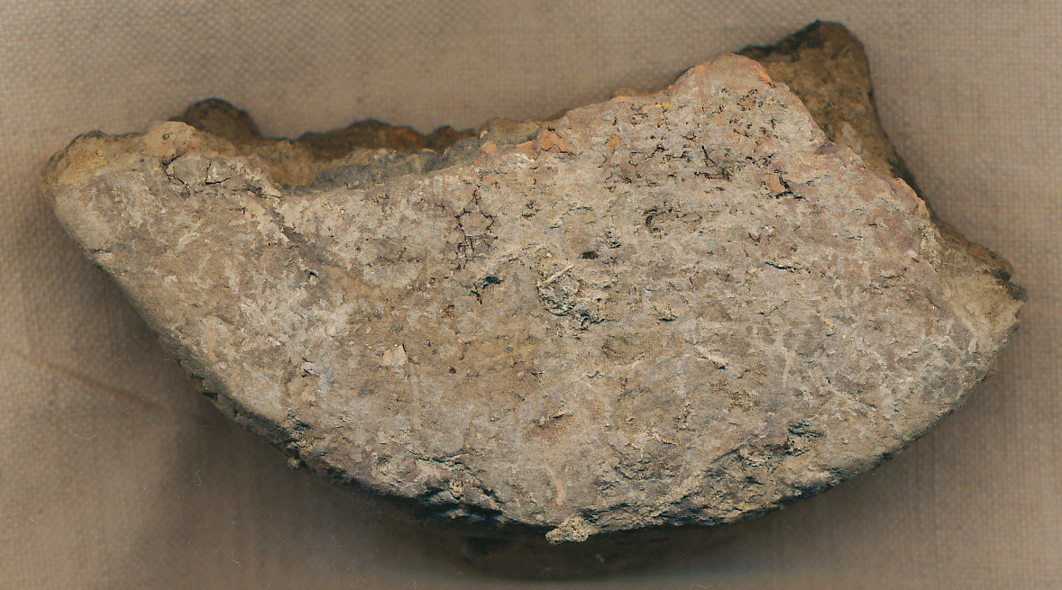 Szürke külső-belső felületű, fekete törésű, korong nélkül készített, kerámiazúzalékkal soványított kisebb vastag falú edény vágott aljtöredéke a felmenő fal indításával.