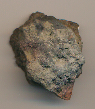 Belső felületán téglaszínű, fekete törésű, kívül letöredezett, korong nélkül készített, kerámiazúzalékkal soványított, omlékony kis oldaltöredék.