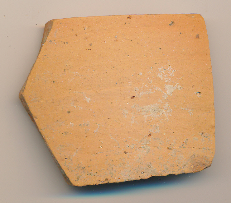 Téglaszínű, kívül-belül jól eldolgozott felületű, korongolt, vékony falú edény enyhén íves oldaltöredéke.