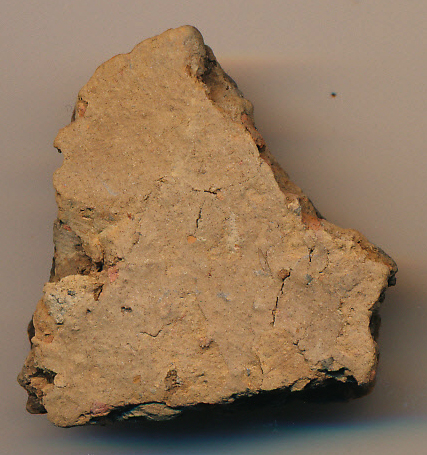 Kívül-belül világos téglaszínű, szürke törésű, kerámiazúzalékkal soványított anyagú, eldolgozott külső-belső felületű, korong nélkül készített edény vékony falú oldaltöredéke.