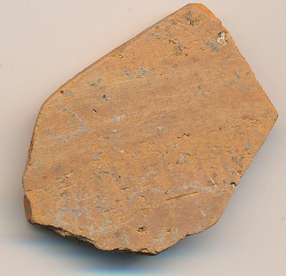 Téglaszínű, korongolt, kívül sávosan elsimított felületű, vékony falú egyenes oldaltöredék.