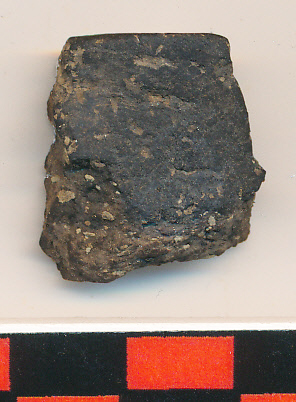 Fekete, apró kerámiazúzalékkal soványított anyagú, jól eldolgozott felületű, kis edény elvékonyodó pereme.