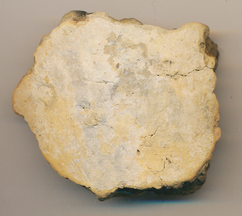 Kívül téglaszínű, belül szürke felületű, fekete törésű, kerámiazúzalékkal soványított, korong nélkül készített edény kicsit vastagabb, kopott oldaltöredéke.